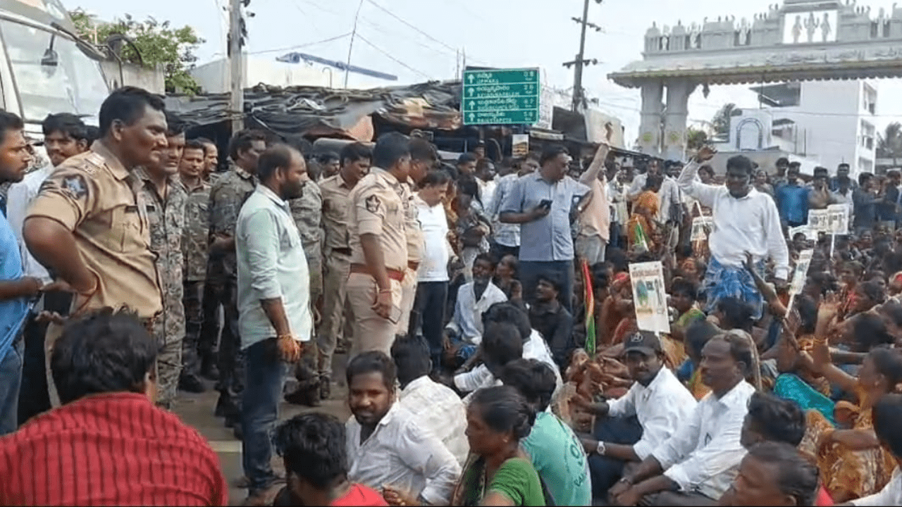నిరసనలో మత్స్యకారులు.. హోం మంత్రి అనిత ఈ విషయంపై వెంటనే సమాధానం చెప్పాలని డిమాండ్ చేశారు. “ప్రాజెక్టు పూర్తిగా రద్దు చేయాలి, లేకపోతే ఆందోళనలు కొనసాగుతాయి” అని నినాదించారు. బీసీవై పార్టీ అధినేత రామచంద్ర యాదవ్ను పోలీసులు అరెస్ట్ చేసినట్లు తెలుస్తోంది. వారు ఆయన్ను వెంటనే విడుదల చేయాలని కూడా కోరారు. పోలీసులు ట్రాఫిక్ రూట్ డైవర్ట్ చేసి, పరిస్థితిని నియంత్రించడానికి ప్రయత్నిస్తున్నారు.