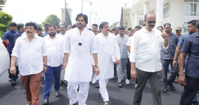 Deputy Chief Minister Pawan Kalyan Visits Tirupati: ఉప ముఖ్యమంత్రి, అటవీ పర్యావరణ శాఖల మంత్రి అయిన పవన్ కల్యాణ్ ఈరోజు తిరుపతి జిల్లాలో పర్యటిస్తున్నారు. ఈ ఉదయం ఆయన ప్రత్యేక విమానంలో రేణిగుంట ఎయిర్ పోర్టుకు చేరుకున్నారు. ఎయిర్పోర్టులో పార్టీ నాయకులు, ఉన్నతాధికారులు ఆయనకు ఘన స్వాగతం పలికారు.