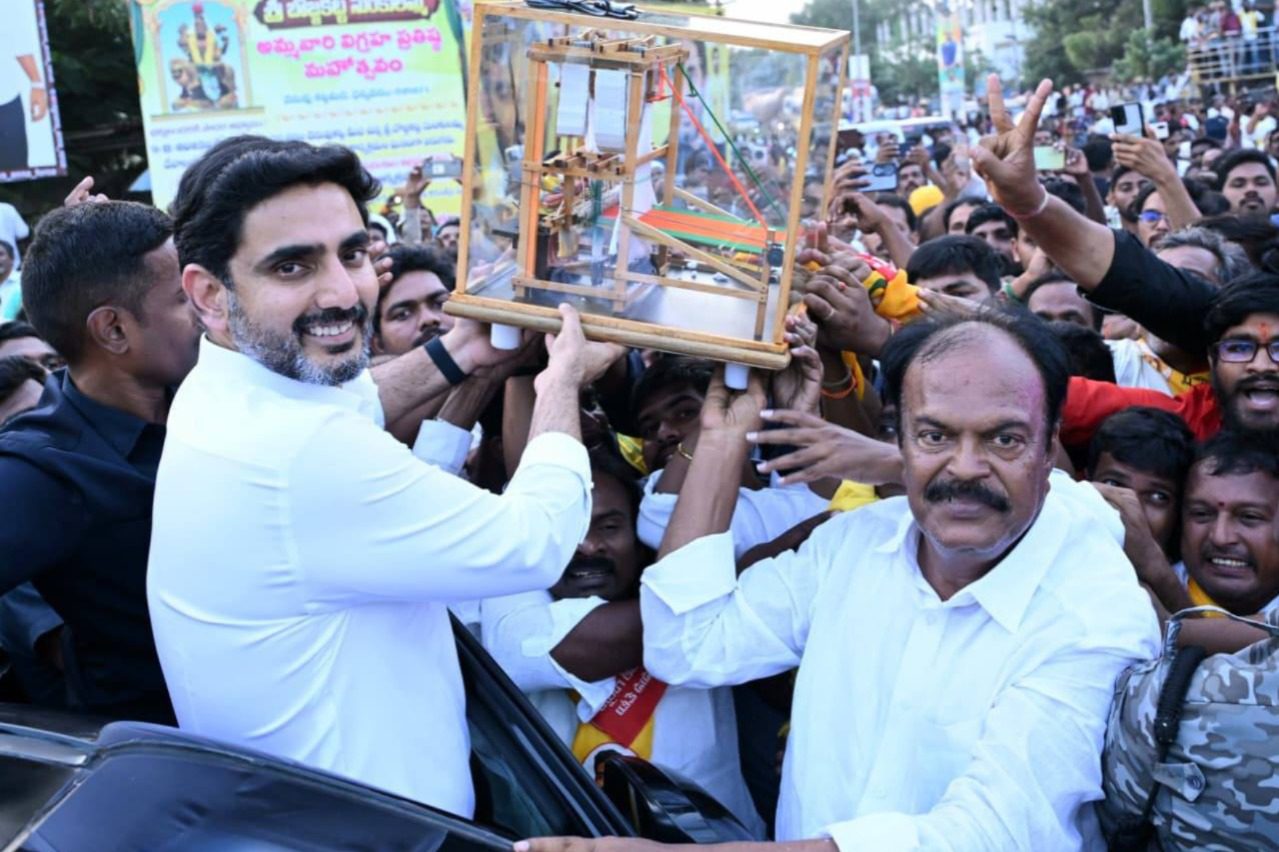 విమానాశ్రయం నుంచి రోడ్డు మార్గంలో కళ్యాణదుర్గం బయలుదేరిన లోకేశ్, మార్గమధ్యంలో ప్రజలను పలకరించారు. ప్రతి ఒక్కరి అర్జీలు స్వీకరించి, సమస్యలు విన్నారు. దారి పొడవునా TDP కార్యకర్తలు, ప్రజలు నీరాజనాలు పలికారు. ధర్మవరం పట్టణంలో పొట్టి శ్రీరాములు కూడలి వద్ద తెలుగు యువత ఆధ్వర్యంలో గజమాలతో స్వాగతం పలికారు. మామిళ్లపల్లి గ్రామంలో TDP శ్రేణులు పెద్ద ఎత్తున ఏర్పాట్లు చేశాయి. మాజీ మంత్రి పల్లె రఘునాథరెడ్డి, ఎమ్మెల్యేలు పల్లె సింధూరారెడ్డి, అమిలినేని సురేంద్రబాబు, కందికుంట వెంకట ప్రసాద్, దగ్గుబాటి వెంకట ప్రసాద్, బండారు శ్రావణి శ్రీ, ఎమ్ఎస్ రాజు తదితరులు స్వాగతం పలికారు.