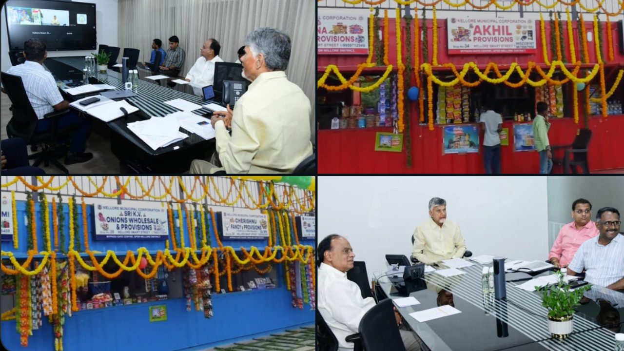 Smart Street Nellore Inaugurated by CM: నెల్లూరు నగరంలో మైపాడు గేట్ సెంటర్ వద్ద ‘స్మార్ట్ స్ట్రీట్’ వెండింగ్ మార్కెట్ను సీఎం చంద్రబాబు నాయుడు శనివారం అమరావతిలోని తన కార్యాలయం నుంచి వర్చువల్ విధానంలో ప్రారంభించారు. రూ. 7 కోట్లతో అత్యాధునికంగా ఏర్పాటు చేసిన ఈ స్మార్ట్ స్ట్రీట్ వెండింగ్ మార్కెట్లో మొత్తం 30 ప్రత్యేక కంటైనర్లతో 120 దుకాణాలను ఏర్పాటు చేశారు.