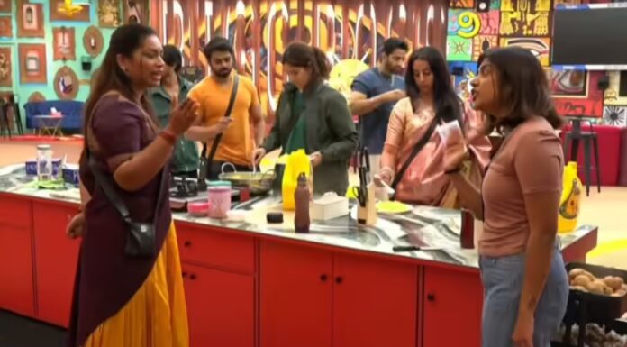 ఇంతలో అయినా కెప్టెన్ ఆ గిన్నె మధ్యాహ్నం నుంచి అక్కడే ఉంది.. అంటూ మాధురి మాట్లాడింది. మధ్యాహ్నం నుంచి అక్కడే ఉందా నైట్ పెట్టారు తెలుసుకోండి.. మీకు అసలు తెలీకుండా వచ్చి మధ్యలో మాట్లాడకండి.. అర్ధరాత్రి తీసిన పిండి అది.. అంటూ మాధురిపై ఫైర్ అయింది రీతూ. దీంతో సుమన్ గారు ఇది ఇక్కడే ఉంది కదా పిండి.. బయట ఉందా.. అని మాధురి అడిగింది. లేదు బయటే ఉంది.. అని సుమన్ చెప్పాడు. వెంటనే పిండి ఉన్న గిన్నె నేను ఎలా కడుగుతాను సింక్లో వేశారా.. అంటూ రీతూ పాయింట్ మార్చింది. దీంతో మరి ఇప్పటివరకూ ఫ్రిడ్జ్లో ఉందన్నావ్.. ఇప్పుడు అబద్ధాలు ఆడుతున్నావ్.. అని మాధురి కొశ్చన్ చేసింది. మీరు ఏది పడితే అది మాట్లాడకండి.. అంటూ రీతూ అరిచింది. ఏంటి ఏయ్ ఏంటి.. నీకు ఒక స్టాండ్ లేదా.. అంటూ మాధురి ఫైర్ అయింది. ఏంటి స్టాండ్ ఏం తెలీకుండా మధ్యలో దూరిపోకండి.. అంటూ రీతూ కూడా అరిచింది.