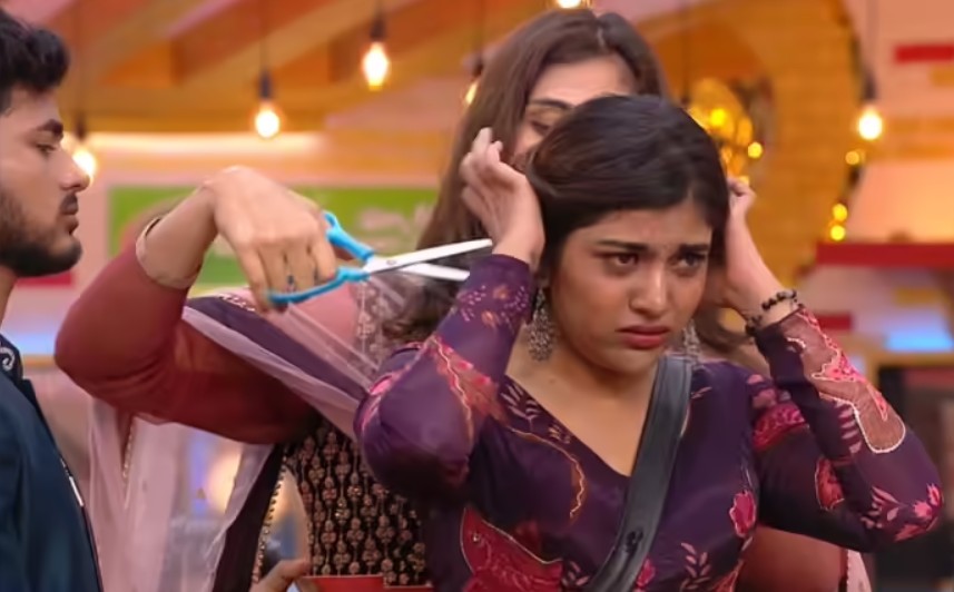 అయితే, సంజన రీఎంట్రీలో భాగంగా.. తనూజ కాఫీ, ఇమ్మానుయేల్ తన కెప్టెన్సీ, భరణి లాకెట్లు త్యాగం చేశారు. ఇక సుమన్ శెట్టిని సిగరెట్ హ్యాబిట్ మానుకోవాలని కోరగా.. అతను నో నేను త్యాగం చేయను అని చెప్పేశాడు. ఇక శ్రీజాని తన బట్టలు మొత్తం త్యాగం చేయాలని కోరారు నాగార్జున. ఎన్నిరోజులు త్యాగం చేయాలని సార్ అని అడిగింది శ్రీజా. నువ్వు ఇక్కడ ఎంత కాలం ఉంటే అంత కాలం అని అన్నారు నాగార్జున. ఒక్క డ్రెస్తో ఎలా ఉంటాం సార్.. నో అని అనేసింది. ఇక చివరి ఛాన్స్గా రీతూ చౌదరి హెయిర్ కట్ చేసుకోవాలి. టామ్ బాయ్ కట్ చేయించుకుంటే.. బ్యాటరీ ఫుల్ రీచార్జ్ అయ్యి.. సంజన మళ్లీ ఇంట్లోకి వస్తుంది. కాబట్టి.. ఆమె రావాలంటే నువ్వు నీ హెయిర్ని త్యాగం చేయాల్సిందే అని అన్నారు నాగార్జున. దాంతో నోరెళ్ల బెట్టిన రీతూ.. షాక్లో ఉండిపోయింది. నాగార్జున నెంబర్స్ లెక్కిస్తుంటే.. ఓకేసార్ అనేసింది రీతూ. అప్పుడు నాగార్జున.. పవన్ స్టోర్ రూంలోకి వెళ్లు.. అక్కడ కత్తెర ఉంది తీసుకుని రా అని అన్నారు. రీతూ బొచ్చె కత్తిరించడానికి కావాల్సిన కత్తెర కోసం డీమాన్ పవన్ని పంపించడం ఏదైతే ఉందే హైలైట్ అంతే. తీరా.. ఓకే అనేసిన తరువాత.. ఏడుపు స్టార్ట్ చేస్తుంది రీతూ. ఒకే అన్న తరువాత ఎందుకు ఏడుస్తున్నావ్ అని అన్నది తనూజ.