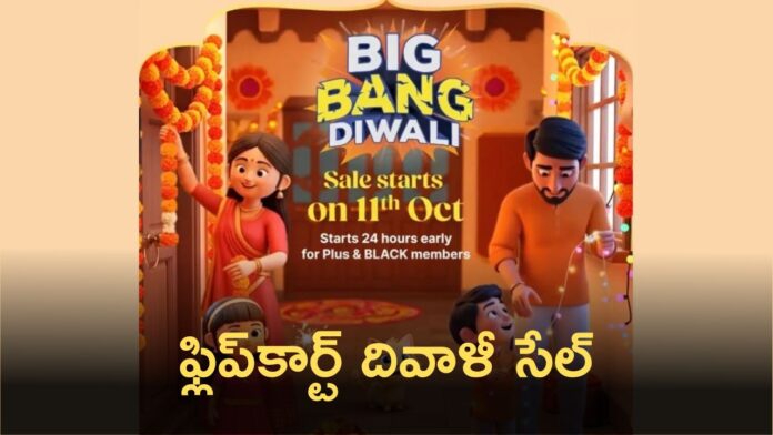 Flipkart Diwali Sale 2025: దసరాకు ఆఫర్ల వర్షం కురిపించిన ఈ-కామర్స్ దిగ్గజాలు అమెజాన్, ఫ్లిప్కార్ట్.. మరోసారి ఆఫర్లు ప్రకటించేందుకు సిద్దమవుతున్నాయి. రానున్న దీపావళి పండుగను దృష్టిలో పెట్టుకొని ఫ్లిప్కార్ట్ మరో కొత్త సేల్ను ప్రకటింటింది. ఫ్లిప్కార్ట్ బిగ్ బ్యాంగ్ దివాళీ సేల్ 2025 పేరిట దీన్ని తీసుకురానుంది. ఈ సేల్లో ఫ్లాగ్షిప్ స్మార్ట్ఫోన్ల నుండి గృహోపకరణాల వరకు ప్రతిదానిపై భారీ డిస్కౌంట్లు, బ్యాంక్ ఆఫర్లను అందజేస్తుంది. కాగా, ఈ బిగ్ బ్యాంగ్ దివాళీ సేల్ అక్టోబర్ 11 నుండి ప్రారంభమవుతుంది. అయితే, ఫ్లిప్కార్ట్ ప్లస్, ఫ్లిప్కార్ట్ బ్లాక్ సభ్యులకు అక్టోబర్ 10 నుంచే సేల్ అందుబాటులోకి వస్తుంది. ఇప్పటికే ఫ్లిప్కార్ట్ తన యాప్లో బ్యానర్లు, నోటిఫికేషన్ల ద్వారా ఈ సేల్కు సంబంధించిన సమాచారాన్ని వెల్లడించింది.