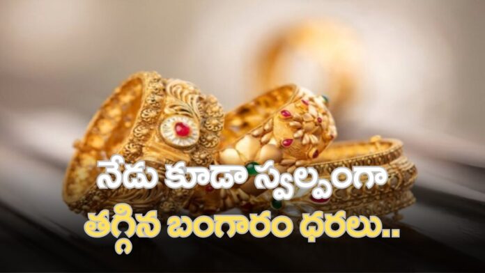 TG Gold Prices Today: దేశవ్యాప్తంగా బంగారం ధరలు కొద్దికొద్దిగా తగ్గుతూ పోతున్నాయి. పసిడి రేట్లు నిన్న కాస్త తగ్గగా.. నేడు కూడా దేశంలోని ప్రధాన నగరాల్లో ధరల్లో కాస్త తగ్గుదల కనిపిస్తోంది. బంగారం తులానికి రూ. లక్ష మార్కు దాటి మొన్న కూడా దూసుకుపోగా నిన్న కాస్త స్థిరంగా ఉంది. గత కొన్ని రోజులుగా పెరుగుతూ వస్తున్న బంగారం ధరలు ఈరోజు కూడా అదే ధోరణిని కొనసాగించాయి. దీంతో పసిడి ప్రియులు ఇక బంగారం కొనగలమా అంటూ తమ ఆశలను చంపుకుంటున్నారు. ఈరోజు కూడా మళ్ళీ పెరుగుతాయా అని చూసినప్పటికీ.. నేడు కాస్త తగ్గడం గమనార్హం.