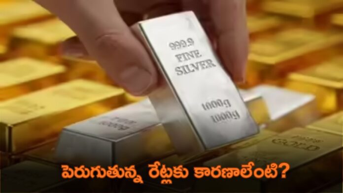 Reasons Behind Gold and Silver Prices Hike: బంగారం, వెండి ధరలు ఆకాశాన్ని తాకుతున్నాయి. రోజు రోజుకూ రికార్డు ధర పలుకుతున్నాయి. సామాన్యుడికి అందనంత దూరంలో రేట్లు పెరుగుతున్నాయి. ప్రస్తుతం భారత్లో తులం బంగారం ధర రూ.1.30 లక్షలకు పైమాటే. ఇక, బంగారంతో పోటీగా వెండి ధరలు కూడా పెరుగుతున్నాయి. ప్రస్తుతం కిలో వెండి ధర రూ.1,90,000 వద్ద కొనసాగుతోంది. ఈ ధరలు రోజురోజుకు ఎందుకు పెరుగుతున్నాయనేది చాలా మందిలో సందేహం నెలకొంది. మన దేశంలో వీటి ధరలు పెరిగేందుకు దారితీసిన అంతర్జాతీయ, దేశీయ కారణాలేంటో ఇప్పుడు చూద్దాం.