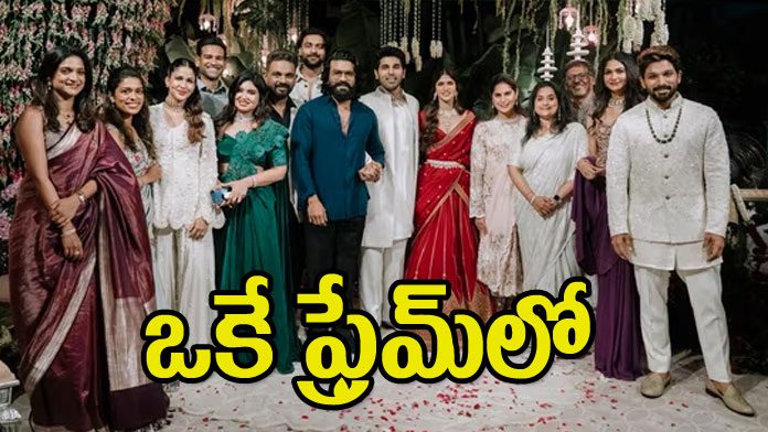 అల్లు శిరీష్ ఎంగేజ్మెంట్ ఫొటోలు ప్రస్తుతం సోషల్ మీడియాలో వైరల్ అవుతున్నాయి. ఈ ఫొటోల్లో అల్లు అర్జున్, రామ్చరణ్ ఒకే ఫ్రేమ్లో కనిపించడం ఆసక్తికరంగా మారింది. శిరీష్, నయనికలతో అల్లు అర్జున్ – స్నేహారెడ్డి, రామ్చరణ్ – ఉపాసన కలిసి ఓ ఫొటో దిగారు. మరో ఫొటోలో అల్లు అరవింద్, సురేఖలతో కలిసి రామ్చరణ్, బన్నీ ఫొటోలకు ఫోజులిచ్చారు. చాలా రోజుల తర్వాత బన్నీ, చరణ్ ఒకే ఫ్రేమ్లో కనిపించడంతో ఈ స్టార్ హీరోల అభిమానులు తెగ ఖుషి అవుతున్నారు.