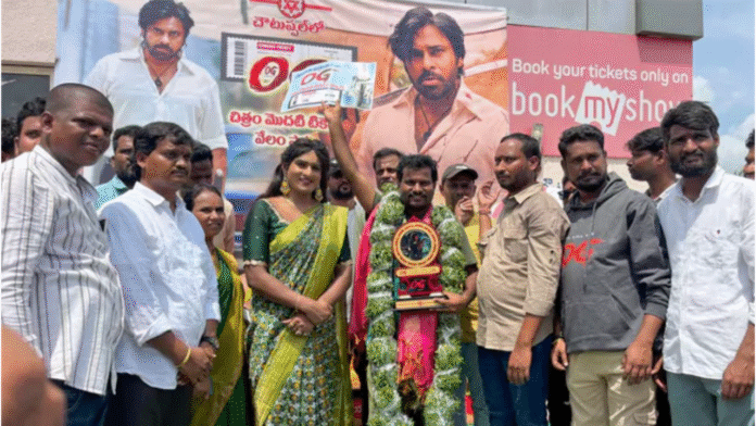 ఈ నెల 25న ఓజీ సినిమా ప్రపంచవ్యాప్తంగా విడుదల అవుతోంది. ఈ క్రమంలో OG సినిమా బెన్ఫిట్ షో టికెట్లకు వేలం పాట పాడారు. తెలంగాణలోని యాదాద్రి భువనగిరి జిల్లా చౌటుప్పల్లో జరిగిన వేలం పాటలో ఒక టికెట్ ఏకంగా రూ. 1,29,999 పలికింది. ఈ టికెట్ను పవన్ వీరాభిమాని ఆముదాల పరమేష్ సొంతం చేసుకున్నారు. ఈ మొత్తాన్ని జనసేన పార్టీ కార్యాలయానికి ఇవ్వనున్నట్లు తెలిపారు.