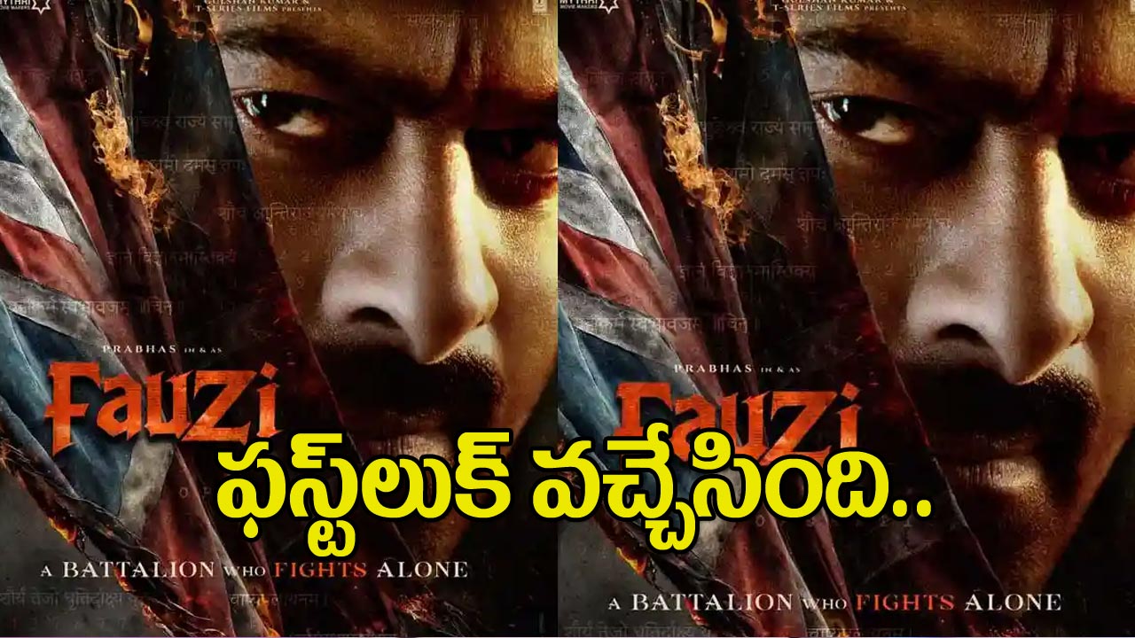 Fauzi: బర్త్డే రోజు ఫ్యాన్స్కు అదిరిపోయే ట్రీట్ ఇచ్చారు ప్రభాస్. హనురాఘవపూడి దర్శకత్వంలో రూపొందుతోన్న మూవీ టైటిల్తో పాటు ఫస్ట్లుక్ను ప్రభాస్ బర్త్డే సందర్భంగా గురువారం రివీల్ చేశారు. ఈ సినిమాకు ముందు నుంచి ప్రచారంలో ఉన్న ఫౌజీ టైటిల్నే కన్ఫామ్ చేశారు. ఫస్ట్ లుక్ పోస్టర్లో రౌద్రంగా ప్రభాస్ కనిపిస్తున్నారు. ఈ పోస్టర్లో బ్రిటీషర్ల జెండా మంటల్లో కాలిపోతూ కనిపిస్తుంది. పోస్టర్పై ఉన్న సంస్కృతం అక్షరాలు ఆసక్తిని పంచుతున్నాయి.