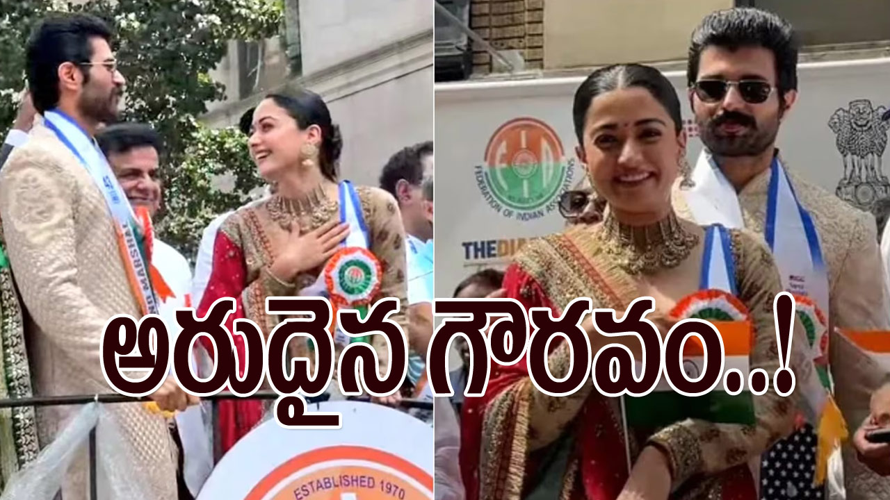 ఇండియా డే పరేడ్లో ఒకరి చేతిని మరొకరు పట్టుకొని చాలా క్లోజ్గా అభిమానులకు కనిపించారు విజయ్, రష్మిక. ఈ వేడుకల్లో ఇద్దరు ట్రెడిషనల్ డ్రెస్లలో మెరిశారు. విజయ్ కుర్తా పైజమా ధరించగా… రష్మిక రెడ్ కలర్ చుడీదార్లో కనిపించింది. విజయ్, రష్మిక ఈ పరేడ్కు స్పెషల్ అట్రాక్షన్గా నిలిచారు.
