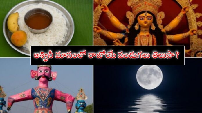 అశ్వినీ మాసంలో రాబోయే పండుగలు/ఆచారాలు: