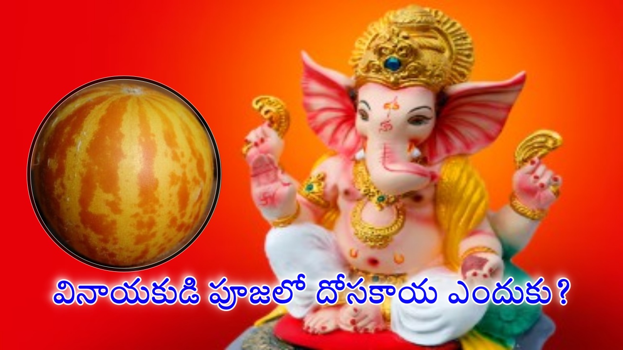 Vinayaka Chavithi 2025 Puja items: రేపే వినాయక చవితి. దేశం మెుత్తం వినాయక చవితి పండుగను ఘనంగా జరుపుకునేందుకు సిద్ధమైంది. ఈ క్రమంలో మార్కెట్లన్నీ గణపతి విగ్రహాలు, పూజా సామాగ్రితో కిటకిటలాడుతున్నాయి. వినాయక చవితి రోజు పూజలో ఉండ్రాళ్లు, లడ్డూలు, 21 రకాల పత్రాలు, పూలు, పళ్లు నైవేద్యంగా సమర్పించడం మనందరికీ తెలుసు. కానీ వినాయకుడి పూజలో తప్పక ఉండాల్సిన ఐటెమ్ మరొకటి ఉంది. అదే దోసకాయ. దీనిని గణపతి ఆరాధనలో ఎందుకు నైవేద్యంగా పెడతారు, దీని వెనుక ఉన్న కారణమేంటో తెలుసుకుందాం.