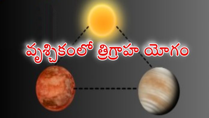 Trigrahi Yoga in Scorpio: ఆధ్యాత్మికంగా, గ్రహాల సంచారపరంగా నవంబర్ నెల చాలా ప్రత్యేకమైనది. పైగా ప్రస్తుతం కార్తీక మాసం నడుస్తోంది. ఈ పవిత్రమైన మాసంలో గ్రహాలు తమ స్థానాలను మార్చి ఇతర గ్రహాలతో కలిసి అరుదైన యోగాలను సృష్టించబోతున్నాయి. అలాంటి వాటిలో ఒకటి త్రిగ్రాహి యోగం. ఇటీవల కుజ గ్రహం వృశ్చిక రాశిలోకి ప్రవేశించింది. త్వరలో గ్రహాల రాజైన సూర్యుడు, ఐశ్వర్యాన్ని ఇచ్చే శుక్రుడు కూడా ఇదే రాశిలోకి వెళ్లబోతున్నారు. వృశ్చిక రాశిలో ఈ మూడు గ్రహాల సంయోగం వల్ల అరుదైన త్రిగ్రాహ యోగం ఏర్పడబోతుంది. ఇది మూడు రాశులవారికి అదృష్టంతోపాటు ఊహించని బెనిఫిట్స్ ను అందించబోతుంది. ఆ రాశులు ఏవో తెలుసుకుందాం.
