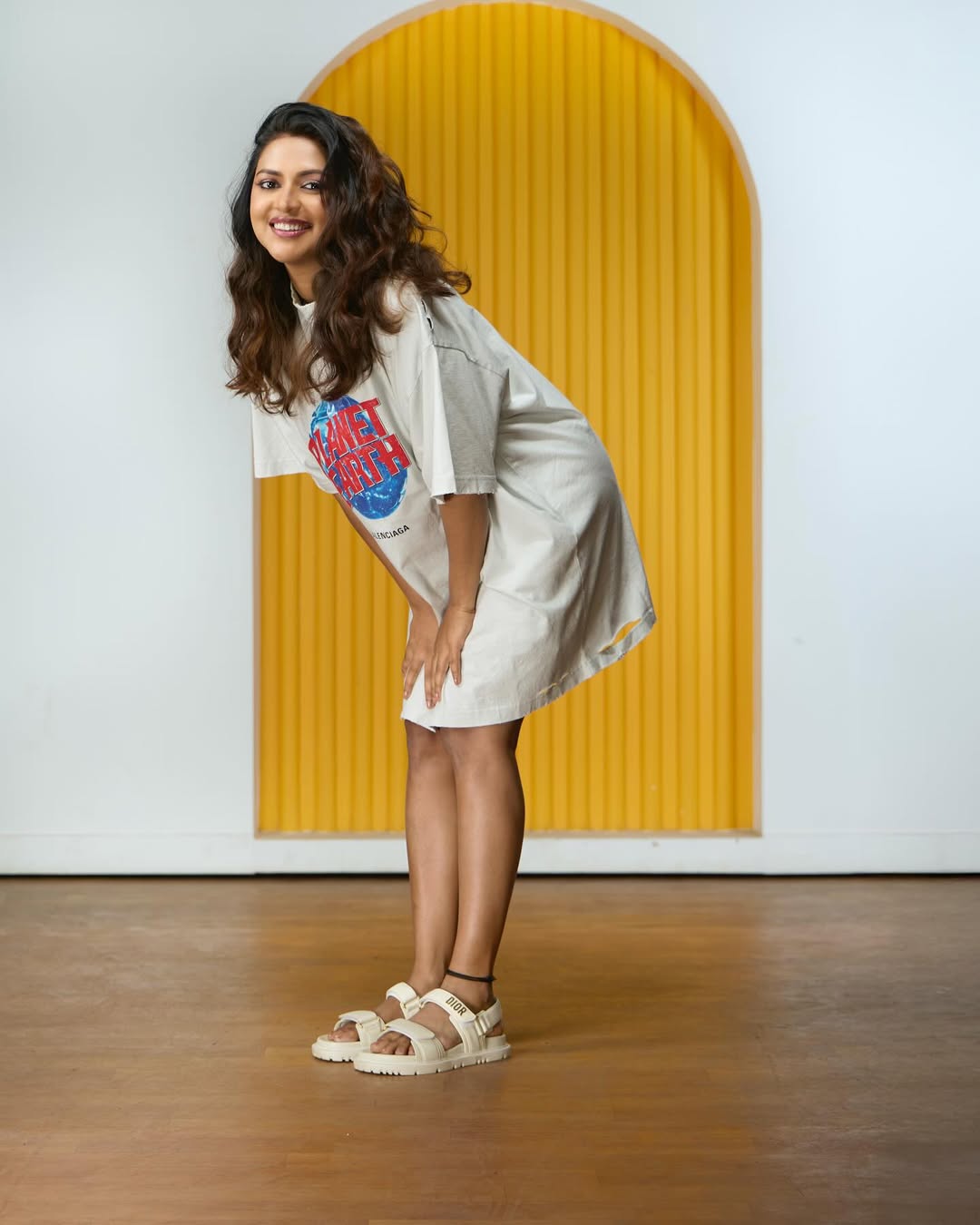 Amala Paul latest Photos: టాలీవుడ్ బ్యూటీ అమలా పాల్ చాలా రోజుల తర్వాత అదిరిపోయే గ్లామర్ ట్రీట్ ఇచ్చింది. ఫ్యాంట్ వేసుకోకుండా కేవలం టీషర్ట్ మాత్రమే వేసుకుని ఫోజులిచ్చింది. ఈ పిక్స్ నెట్టింట వైరల్ గా మారాయి.