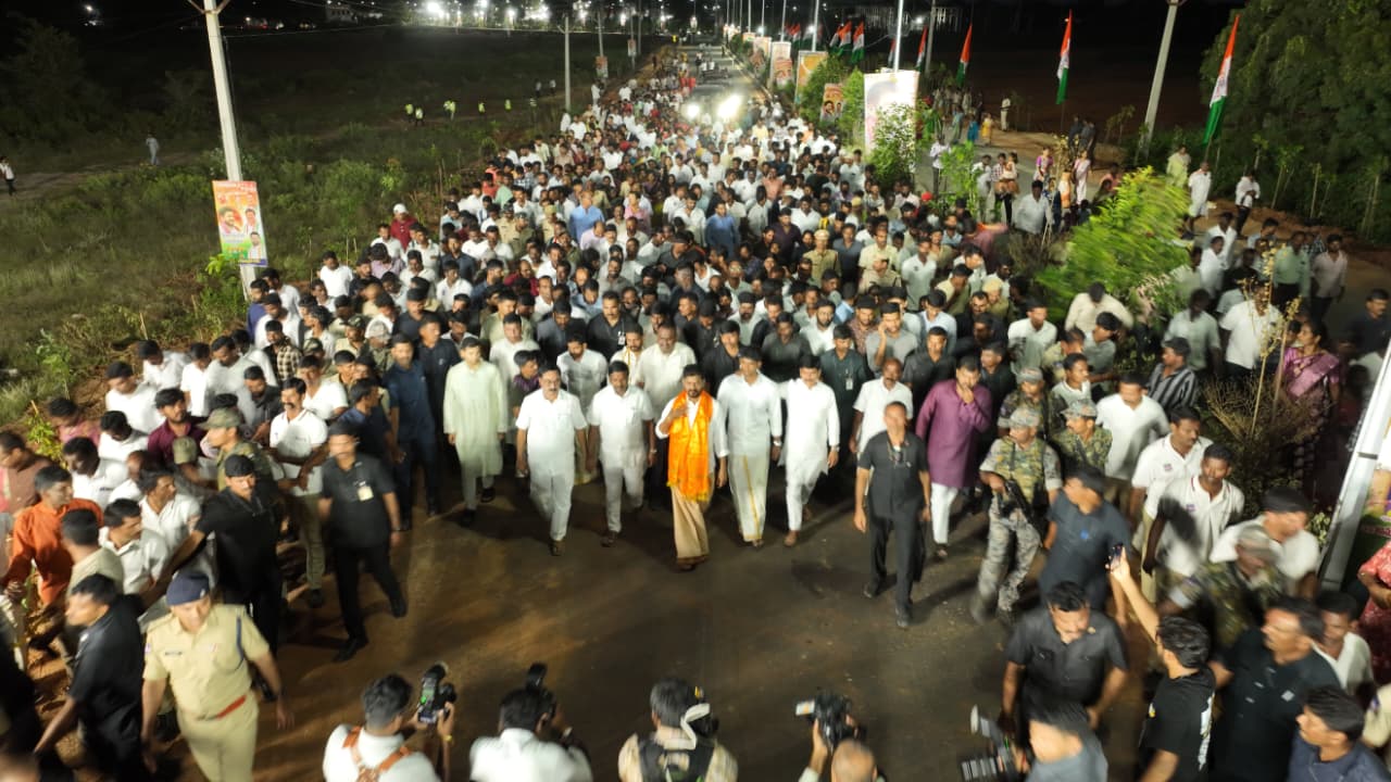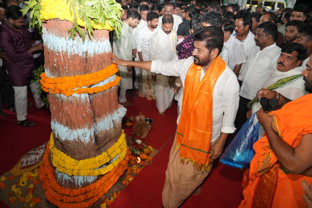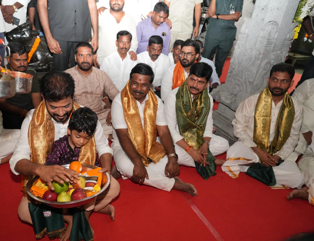 సీఎం రేవంత్ రెడ్డి, ఆయన కుటుంబ సభ్యులకు కొండారెడ్డి పల్లి గ్రామస్థులు పూల జల్లు కురిపిస్తూ, గజమాలలతో ఘన స్వాగతం పలికారు.అనంతరం కొండారెడ్డిపల్లిలోని ఆంజనేయస్వామి ఆలయంలో సీఎం ప్రత్యేక పూజలు చేశారు. సాయంత్రం దసరా వేడుకల్లో భాగంగా కుటుంబ సభ్యులతో కలిసి జమ్మి పూజ కార్యక్రమంలో పాల్గొన్నారు.దసరా వేడుకల్లో భాగంగా కుటుంబ సభ్యులతో కలిసి కోట మైసమ్మ దేవాలయంలో ప్రత్యేక పూజలు నిర్వహించారు. అనంతరం కాలినడకన గ్రామస్థులతో కలిసి వెళ్లి జమ్మిచెట్టు పూజా కార్యక్రమంలో పాల్గొన్నారు.అనంతరం కొండారెడ్డిపల్లి నుంచి రోడ్డుమార్గాన కొడంగల్ బయలుదేరారు. అక్కడి నుంచి రోడ్డు మార్గాన హైదరాబాద్ చేరుకున్నారు.రాష్ట్ర ప్రజలకు దసరా శుభాకాంక్షలు తెలిపిన సీఎం రేవంత్ రెడ్డి, తెలంగాణ సాంస్కృతిక జీవన విధానంలో దసరాకు ప్రత్యేక స్థానం ఉందన్నారు. చెడుపై మంచి సాధించిన విజయానికి చిహ్నంగా దసరా జరుపుకుంటామని తెలిపారు.తెలంగాణ సబ్బండ వర్గాల ఐక్యతకు దసరా పండుగ నిదర్శనమని పేర్కొన్నారు. అప్రతిహత విజయాలతో రాష్ట్రం అభివృద్ధి సాధించాలని దుర్మమ్మను ప్రార్థిస్తున్నానని అన్నారు.