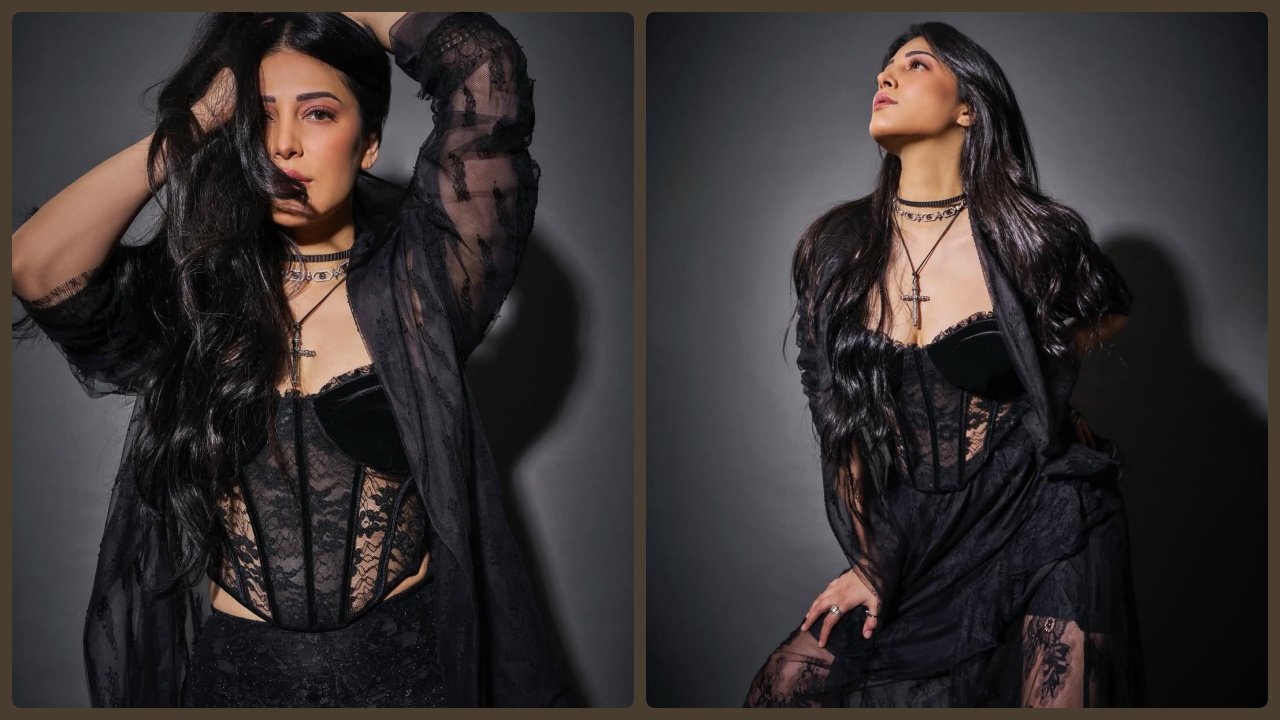 Shruti Haasan Black Outfit Photos: స్టార్ హీరో కమల్ హాసన్ కుమార్తె శ్రుతి హాసన్ తన అందాలతో కుర్రకారు మైండ్ బ్లాక్ చేస్తోంది. తాజాగా ఈ ముద్దుగుమ్మ బ్లాక్ డ్రెస్ లో హాట్ ట్రీట్ ఇచ్చింది. ఈ పిక్స్ నెట్టింట వైరల్ గా మారాయి.