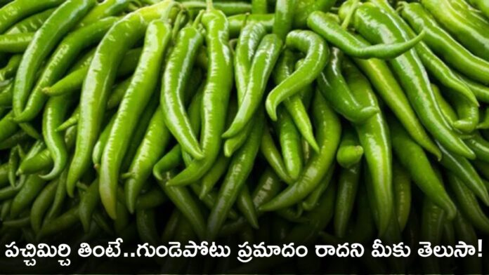పచ్చిమిరపకాయల్లో విటమిన్ సి, విటమిన్ ఎ, బీటా కెరోటిన్, ఐరన్, పొటాషియం వంటి పోషకాలు సమృద్ధిగా ఉంటాయి. ఇందులో ఉండే క్యాప్సైసిన్ అనే పదార్థం మిరపకాయలకు ప్రత్యేకమైన ఘాటు రుచి ఇస్తుంది. ఈ మూలకం శరీరానికి శక్తివంతమైన యాంటీఆక్సిడెంట్లా పనిచేస్తూ వాపును తగ్గిస్తుంది. వాపు తగ్గితే గుండెపై ఒత్తిడి తగ్గి ఆరోగ్యకరమైన రక్తప్రసరణ జరగడంలో సహాయపడుతుంది.