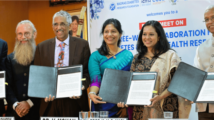 మధుమేహం- మెదడు ఆరోగ్యం మధ్య సంబంధంపై పరిశోధన చేయడానికి చెన్నైలోని మద్రాస్ డయాబెటిస్ రీసెర్చ్ ఫౌండేషన్ (MDRF), బెంగళూరులోని ఇండియన్ ఇన్స్టిట్యూట్ ఆఫ్ సైన్స్లోని సెంటర్ ఫర్ బ్రెయిన్ రీసెర్చ్ (CBR), UKకి చెందిన డిమెన్షియా రీసెర్చ్ ఇన్స్టిట్యూట్ (UK DRI).. MOU పై సంతకం చేశాయి. డయాబెటిస్, అల్జీమర్స్, న్యూరోసైన్స్ రంగాల్లోని నిపుణులు దీనిపై అధ్యయనం చేయనున్నారు.