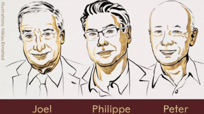 Nobel Prize For Economics 2025: ఆర్థిక శాస్త్రంలో నోబెల్ బహుమతి 2025 సంవత్సరానికి గాను ముగ్గురిని వరించింది. జోయెల్ మోకిర్, ఫిలిప్ అగియోన్, పీటర్ హౌవిట్లకు రాయల్ స్వీడిష్ అకాడమీ ఆఫ్ సైన్సెస్ ఈ అత్యున్న పురస్కారాన్ని ప్రకటించింది. వీరి ముగ్గురి పరిశోధన, ఆవిష్కరణల ఆధారిత ఆర్థిక వృద్ధిని వివరించినందుకు ఈ పురస్కారాన్ని ప్రదానం చేయనున్నారు.