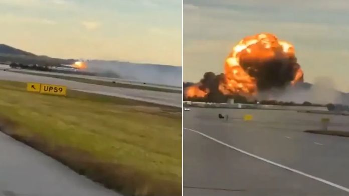 New footage about UPS cargo plane crash near Louisville, Kentucky airport showing the fire during take-off. pic.twitter.com/p93xAw6qa4