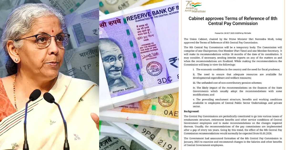 8th Pay Commission Twist: కేంద్ర ప్రభుత్వ ఉద్యోగులు, పెన్షనర్లు ఎదురుచూస్తున్న 8వ వేతన సంఘం ఏర్పడటంతో ఏ మేరకు జీతభత్యాలు పెరగనున్నాయనే చర్చ మొదలైంది. ఈ క్రమంలో ఫిట్మెంట్ ఫ్యాక్టర్ ఎంత ఉంటుందనే అంశం పెద్ద సవాలుగా మారింది. దీనికి కారణం 8వ వేతన సంఘానికి సంబంధించి కేంద్ర కేబినెట్ ఆమోదించిన టర్మ్స్ ఆఫ్ రిఫరెన్స్. ఆ వివరాలు మీ కోసం..