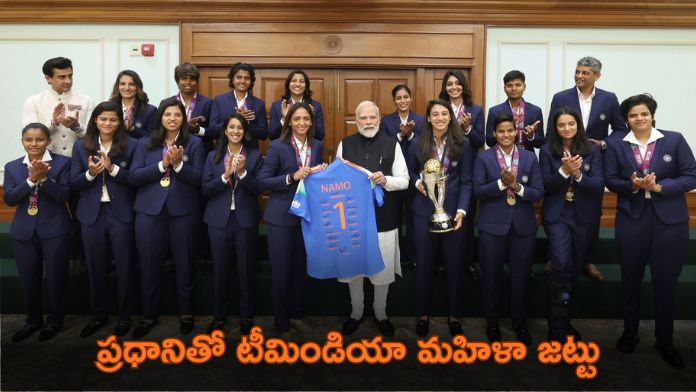 Indian Champion Team Meets Pm Modi Captain Harmanpreet Kaur Presents Jersey: అద్భుతమైన ఆటతీరుతో చారిత్రాత్మక విజయం సాధించిన భారత మహిళా క్రికెట్ జట్టుపై సర్వత్రా ప్రశంసల వర్షం కురుస్తోంది. ఇప్పటికే, పలువురు సెలబ్రెటీలు, రాజకీయ ప్రముఖులు, క్రీడాభిమానులు టీమిండియాకు శుభాకాంక్షలు చెబుతుండగా.. మంగళవారం దేశ రాజధాని ఢిల్లీ నగరంలో ప్రధాని నరేంద్ర మోదీ టీమిండియాను అభినందించారు. ఆయన నివాసంలో టీమిండియా మర్యాదపూర్వకంగా కలిసింది. మహిళల వన్డే ప్రపంచ కప్ ఫైనల్లో హర్మన్ప్రీత్ కౌర్ నేతృత్వంలోని భారత జట్టు ఆదివారం దక్షిణాఫ్రికాను 52 పరుగుల తేడాతో ఓడించి తొలిసారి ఐసీసీ ట్రోఫీని నెగ్గింది. 52 సంవత్సరాల మహిళా క్రికెట్ ప్రపంచ కప్ చరిత్రలో తొలిసారిగా ట్రోఫీని గెలుచుకున్నందుకు హర్మన్ప్రీత్ కౌర్ నేతృత్వంలోని జట్టును ప్రధాని మోదీ అభినందించారు. వరుసగా మూడు పరాజయాలు, సోషల్ మీడియాలో ట్రోలింగ్ను ఎదుర్కొన్న తర్వాత టోర్నీలో అద్భుతమైన ఆటతీరు ప్రదర్శించి టైటిల్ను సాధించడంపై ప్రధాని ప్రశంసించారు. ఢిల్లీ చేరుకున్న తర్వాత మహిళా జట్టుకు హోటల్లో డప్పు చప్పుళ్లు, పూలతో ఘన స్వాగతం లభించింది. ప్లేయర్లు, కోచ్ అమోల్ మజుందార్ కేక్ కట్ చేసి విజయోత్సవ వేడుకలు జరుపుకున్నారు. ప్రధాని మోదీ టీమిండియా జట్టును అభినందించారు. భారత క్రికెట్ ఈ చారిత్రాత్మక క్షణం కలల విజయంగా అభివర్ణించారు. ఈ సందర్భంగా కెప్టెన్ హర్మన్ప్రీత్ కౌర్ ప్రధానికి ‘నమో’ అని ఉన్న జెర్సీని అందజేశారు.