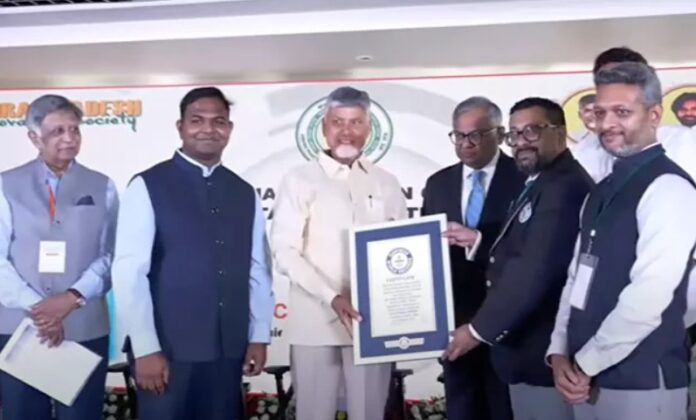 Innovation Andhra: ఏపీలోని చంద్రబాబు ప్రభుత్వం ప్రతిష్ఠాత్మకంగా చేపట్టిన ‘ఆవిష్కరణ ఆంధ్ర’ కార్యక్రమం గిన్నిస్ రికార్డులకెక్కింది. 24 గంటల్లో అత్యధికంగా పారిశ్రామిక వేత్తలు పేర్లు నమోదు కావడంతో ఈ కార్యక్రమం గిన్నిస్ రికిర్డుకెక్కింది. ఆన్ లైన్ లో గడిచిన 24 గంటల్లో 1.67 లక్షల మంది దరఖాస్తు చేసుకోవడంతో ప్రపంచ రికార్డు లభించింది. రికార్డు సర్టిఫికేట్ను సీఎం చంద్రబాబు, మంత్రి లోకేశ్కు గిన్నిస్ బుక్ ప్రతినిధులు అందించారు. ఆవిష్కరణ ఆంధ్రపై నేతలు, పారిశ్రామికవేత్తలు ప్రమాణం చేశారు. ప్రతీ కుటుంబం నుంచి ఒక పారిశ్రామికవేత్తను తయారుచేసే దిశగా కృషి చేస్తామని చంద్రబాబు, లోకేశ్, పారిశ్రామికవేత్తలు ప్రతిజ్ఞ చేశారు.