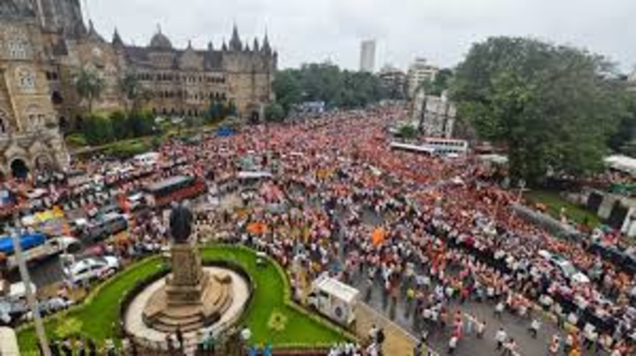 మెడలో కాషాయ కండువాలు ధరించి, తల మీద టోపీలు ధరించిన వ్యక్తులు పెద్ద పెట్టున నినాదాలు చేస్తూ ఒక్కసారిగా బీఎస్ఈ బిల్డింగ్వైపు దూసుకురావడం సోమవారం ఉదయం కలకలం రేపింది. వీళ్లంతా అజాద్ మైదానంలో చేపట్టిన నిరసన కార్యక్రమానికి విచ్చేసిన మరాఠా కోటా కార్యకర్తలు. మూడురోజులుగా ఇక్కడే నిరసనకు దిగిన పాటిల్కు మద్దతుగా రాష్ట్రవ్యాప్తంగా మరాఠాలు పెద్ద ఎత్తున తరలి వస్తున్నారు. ఇక్కడే వంటలు చేసుకోవడానికి కావాల్సిన వంట సామగ్రి, ఆహార పదార్థాలు సిద్దం చేశారు.