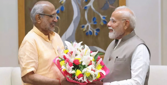 PM Modi meets Vice Presidential candidate CP Radhakrishnan: భారత ఉపరాష్ట్రపతి ఎన్నికలకు సంబంధించి కీలక పరిణామం చోటు చేసుకుంది. బీజేపీ నేతృత్వంలోని జాతీయ ప్రజాస్వామ్య కూటమి (ఎన్డీయే) ఉపరాష్ట్రపతి అభ్యర్థిగా ఎంపికైన సీపీ రాధాకృష్ణన్, సోమవారం న్యూఢిల్లీలో ప్రధాని నరేంద్ర మోదీని కలిశారు. ఆదివారం బీజేపీ జాతీయ అధ్యక్షుడు జేపీ నడ్డా ఈ విషయాన్ని అధికారికంగా ప్రకటించిన అనంతరం ఈ భేటీ జరిగింది.