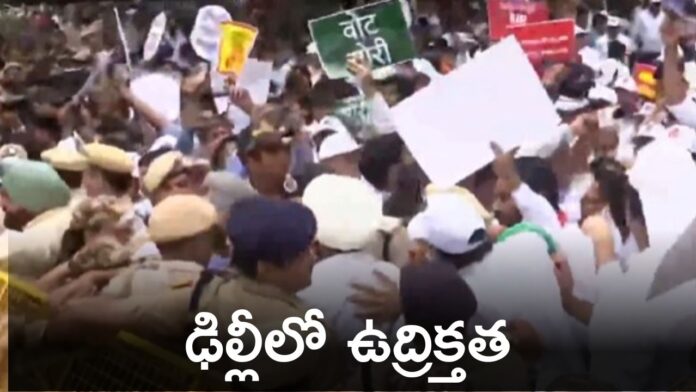 Delhi Vs MPs Rally: ఢిల్లీలో ఈ రోజు ఉద్రిక్తత వాతావరణం నెలకొంది. బీహార్లో ఓటర్ల జాబితా సవరణపై ఎన్నికల సంఘానికి తమ అభ్యంతరాలు తెలియజేయడానికి విపక్ష పార్టీలకు చెందిన ఎంపీలు భారీ ర్యాలీకి సిద్ధమయ్యారు. అయితే, ఈ ర్యాలీ పార్లమెంట్ భవనం నుంచి ఎన్నికల సంఘం కార్యాలయం వరకు వెళ్లేలా అనుమతిని ఢిల్లీ పోలీసులు ఇవ్వలేదు.