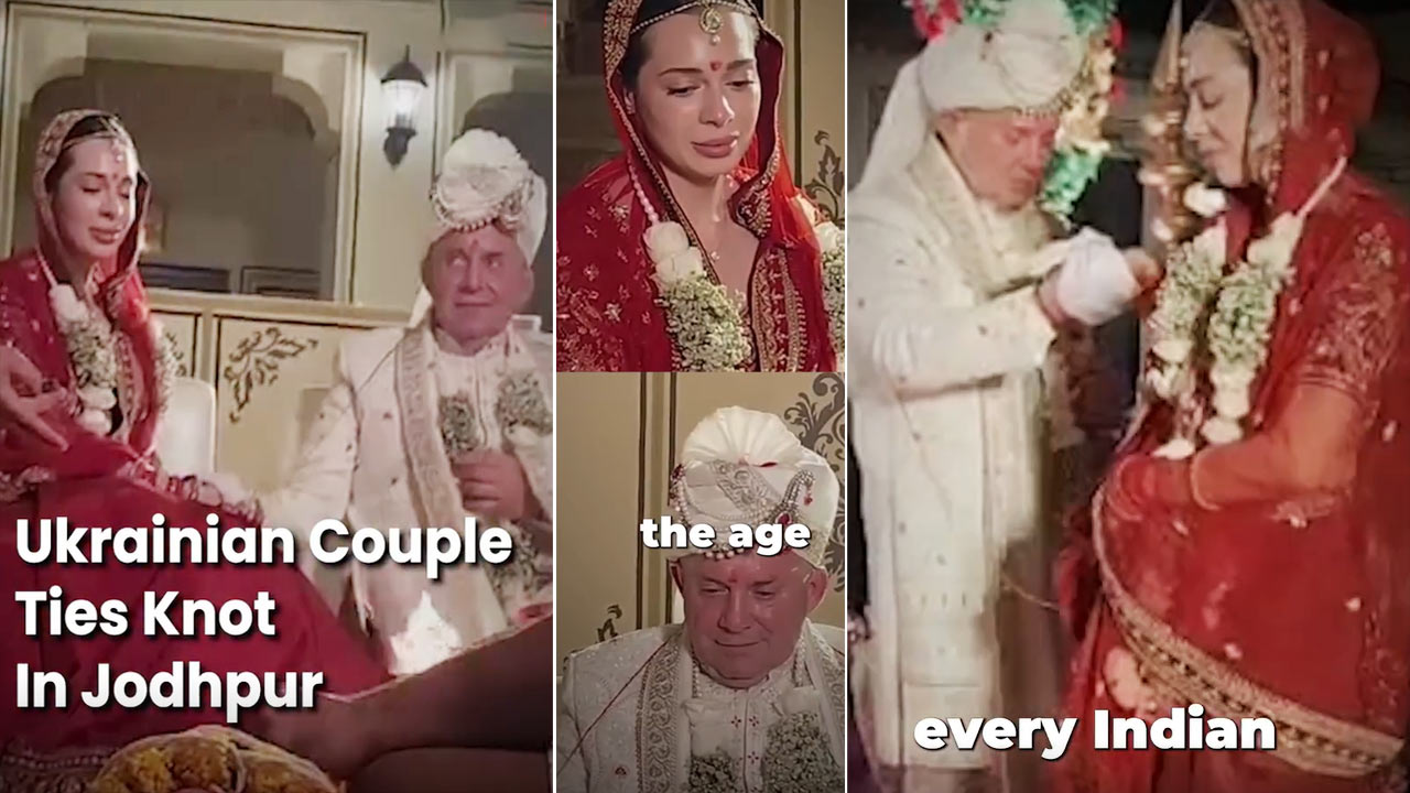 వివరాల్లోకి వెళితే.. రాజస్థాన్లోని జోధ్పూర్ చారిత్రక కోటలు, కలల పెళ్లిళ్లకు పేరుగాంచింది. వయసు, దేశం, సంప్రదాయం లాంటివి పక్కన పెట్టి ఉక్రెయిన్ కి చెందిన 72 ఏళ్ల స్టానిస్లావ్ అనే వరుడు 27 ఏళ్ల అంగెలినా వధువు హిందూ పద్ధతిలో పెళ్లి చేసుకుని ఒక్కటయ్యారు. బాలీవుడ్ సినిమాలు.. రాజస్థానీ పెళ్లి వీడియోలు చూసి ఆకర్షితురాలైన అంగెలినా తన జీవితంలో ప్రత్యేకమైన రోజు సంప్రదాయ భారతీయ వధువు రూపంలో కావాలని కోరుకుంది. ఆమె ఎర్రటి లెహంగా ధరించి, వధువుగా మెరిసింది. ఇదే సమయంలో వరుడు స్టానిస్లావ్ కూడా శేరువాణీ, పాగ్ ధరించి సాంప్రదాయ భారతీయ పద్ధతిలో కనిపించాడు.