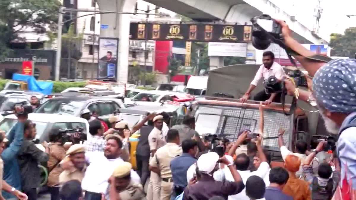 నేతల అరెస్ట్: పోలీసుల వలయాన్ని ఛేదించుకుని ముందుకు వెళ్లేందుకు ప్రయత్నించిన బీజేపీ రాష్ట్ర అధ్యక్షుడు రామచందర్రావుతో పాటు పలువురు ముఖ్య నేతలు, కార్యకర్తలను అరెస్ట్ చేసి పోలీస్ స్టేషన్కు తరలించారు. ఈ క్రమంలో పోలీసులకు, ఆందోళనకారులకు మధ్య తీవ్ర వాగ్వాదం, తోపులాట చోటుచేసుకున్నాయి. దీంతో అసెంబ్లీ పరిసర ప్రాంతాల్లో భారీగా ట్రాఫిక్ జామ్ ఏర్పడింది.