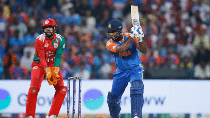 అయినా.. సంజూ శాంసన్ (37 నాటౌట్), అక్షర్ పటేల్(10 నాటౌట్) ధనాధన్ ఆడటంతో స్కోర్ 10 ఓవర్లకే 100కు చేరింది. ఆ తర్వాత సంజూ శాంసన్ (37 నాటౌట్) జతగా ఒమన్ బౌలర్లకు అభిషేక్ శర్మ(31) చుక్కలు చూపించాడు. తనదైన పవర్ హిట్టింగ్ చేసిన అభిషేక్.. షకీల్ వేసిన మూడో ఓవర్లో రెండు ఫోర్లు, ఒక సిక్సర్తో 16 రన్స్ సాధించాడు. రమాదిన్ ఓవర్లో బంతి ఎడ్జ్ తీసుకొని కీపర్ చేతుల్లో పడటంతో అభిషేక్ తుఫాన్ ఇన్నింగ్స్ ముగిసింది. అయితే.. హాఫ్ సెంచరీ తర్వాత శాంసన్, తిలక్ వరుసగా ఔట్ కావడం నిరాశపరిచింది. దీంతో టీమిండియా రెండొందల మార్క్కు 12 పరుగుల దూరంలో ఆగిపోయింది.