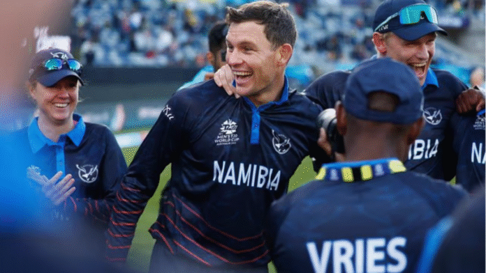 South Africa vs Namibia T20: విండ్హోక్లో శనివారం జరిగిన క్రికెట్ టీ20 ఇంటర్నేషనల్ మ్యాచ్లో దక్షిణాఫ్రికాపై నమీబియా జట్టు అద్భుత విజయం సాధించింది. 4 వికెట్ల తేడాతో సౌతాఫ్రికాను ఓడించడంతో పాటు నమీబియా క్రికెట్ చరిత్రలో ఎప్పటికీ గుర్తుండిపోతుంది. కాగా, టీ20 ప్రపంచకప్ 2026కు ఇటీవల అర్హత సాధించిన ఈ జట్టు.. దక్షిణాఫ్రికాపై థ్రిల్లింగ్ విక్టరీతో అంతర్జాతీయ క్రికెట్లో రికార్డు నెలకొల్పింది.