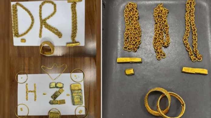 Gold Seize at Shamshabad Airport: హైదరాబాద్లోని శంషాబాద్ విమానాశ్రయంలో డీఆర్ఐ(డైరెక్టరేట్ ఆఫ్ రెవెన్యూ ఇంటిలిజెన్స్) అధికారులు భారీగా బంగారం స్వాధీనం చేసుకున్నారు. ఐరన్ బాక్సులో 3.38 కిలోల బంగారాన్ని దాచి తరలిస్తున్న ముగ్గురు ప్రయాణికులను అదుపులోకి తీసుకున్నారు. కాగా, స్వాధీనం చేసుకున్న బంగారం విలువ సుమారు రూ. 3.36 కోట్లు ఉంటుందని అధికారులు అంచనా వేస్తున్నారు.