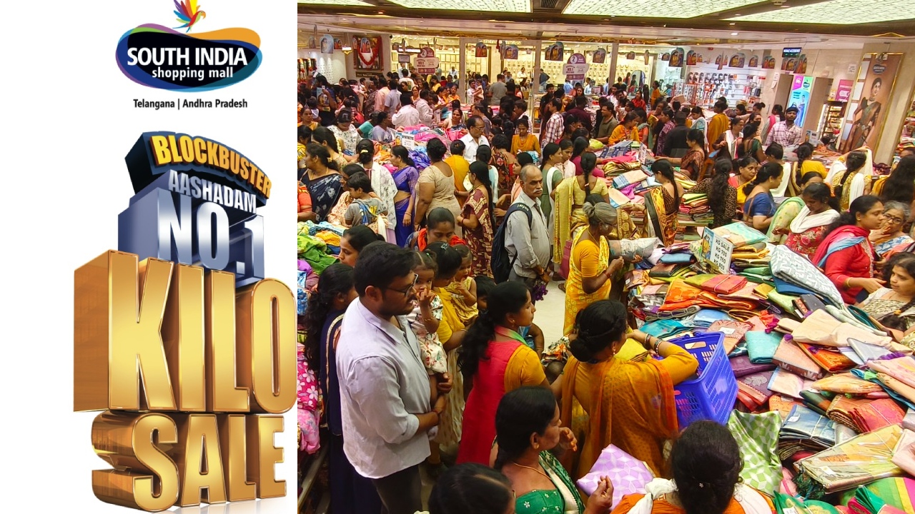 South India Shopping Mall kilo sale: అత్యంత ప్రముఖ షాపింగ్ మాల్ అయినా సౌత్ ఇండియా షాపింగ్ మాల్లో ఆషాఢం మాసం సందర్భంగా అదిరిపోయే సేల్ ప్రకటించారు. బ్లాక్ బస్టర్ కిలో సేల్ పేరుతో.. చీరలను కిలోల చొప్పున అమ్ముతున్నారు. ‘షాపింగ్ కిలోల్లో.. సంతోషం టన్నుల్లో’ అనే క్యాప్షన్తో ఈ సేల్ నిర్వహిస్తున్నారు. ఇందులో భాగంగా అదిరిపోయే ఆఫర్లను కూడా ప్రకటించారు. కంచి పట్టు చీరలు ఒక కిలో చీరలు కొంటే.. ఇంకో కిలో చీరలు ఉచితంగా ఇస్తున్నారు. ఈ ఆఫర్ షాపింగ్ ప్రియులను అమితంగా ఆకట్టుకుంటుంది. ఈ ఆఫర్తో పాటు మరెన్నో అదిరిపోయే ఆఫర్లను సౌత్ ఇండియా షాపింగ్ మాల్ వాళ్ళు మన ముందుకు తెచ్చేశారు. అవేంటంటే..