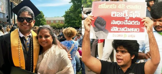 Kavitha son into politics: తెలంగాణ రాజకీయాల్లో ఎమ్మెల్సీ కల్వకుంట్ల కవిత తరచుగా వార్తల్లో నిలుస్తున్నారు. తాజాగా, బీసీ రిజర్వేషన్ల కోసం జరిగిన పోరాటంలో ఆమె పెద్ద కుమారుడు ఆదిత్య పాల్గొనడం రాష్ట్ర రాజకీయ వర్గాల్లో చర్చనీయాంశమైంది. ఖైరతాబాద్ చౌరస్తాలో తెలంగాణ జాగృతి ఆధ్వర్యంలో జరిగిన మానవహారంలో కవితతో పాటు ఆదిత్య కూడా ఫ్లకార్డు పట్టుకొని, బీసీలకు 42 శాతం రిజర్వేషన్లు కల్పించాలని డిమాండ్ చేశారు. విదేశాల్లో ఉన్నత విద్య పూర్తి చేసుకుని ఇటీవల ఇండియాకు తిరిగి వచ్చిన ఆదిత్య, ఈ నిరసన కార్యక్రమంలో చురుగ్గా పాల్గొని, తద్వారా తన రాజకీయ అరంగేట్రానికి సంకేతాలు ఇచ్చారనే అభిప్రాయాలు వ్యక్తమవుతున్నాయి.