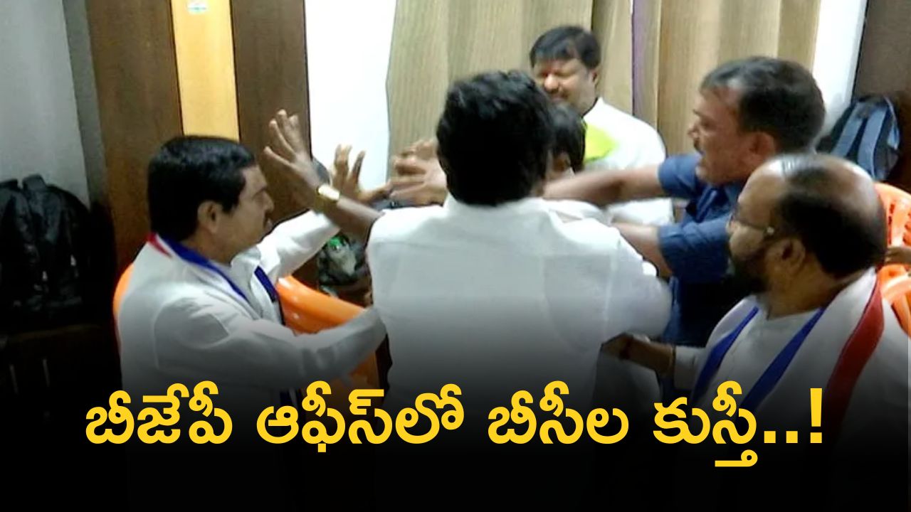Conflict between BC leaders in BJP Office: బీజేపీ రాష్ట్ర కార్యాలయంలో బీసీ సంఘం నేతల మధ్య ఉద్రిక్త వాతావరణం చోటుచేసుకుంది. నేతల ఫొటోల విషయంలో ఒకరిపై ఒకరు దాడి చేసుకున్నారు. ఆర్. కృష్ణయ్యతోపాటుగా బీజేపీ రాష్ట్ర అధ్యక్షుడు రామచంద్రరావు గొడవను అడ్డుకున్నా వారు శాంతించలేదు.