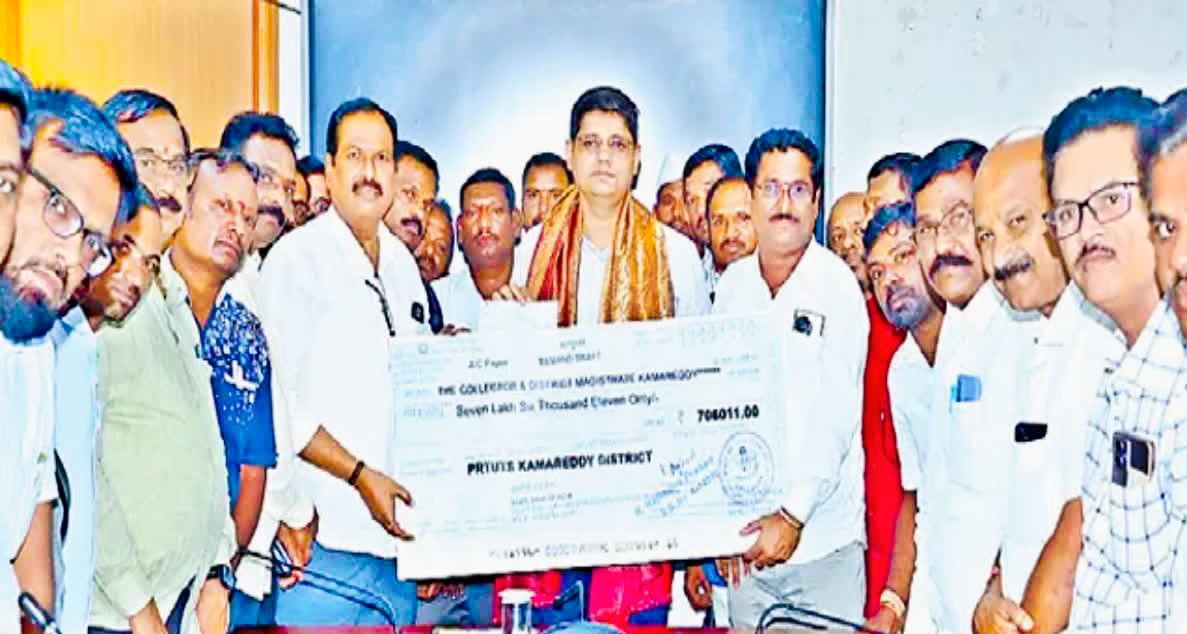 గత ఆగస్టులో కురిసిన కుండపోత వర్షాలకు కామారెడ్డి జిల్లా అతలాకుతలమైంది. పాఠశాలలు సైతం దెబ్బతిన్నాయి. ఈ కష్టకాలంలో పీఆర్టీయూ (PRTU) ఉపాధ్యాయ సంఘం ముందుకు వచ్చింది. జిల్లా అభివృద్ధి, విద్యార్థులను ఆదుకునేందుకు ఏకంగా రూ.7.06 లక్షల విరాళాన్ని ప్రకటించి, జిల్లా కలెక్టర్కు డీడీ అందజేసి తమ ఉదారతను చాటుకుంది.