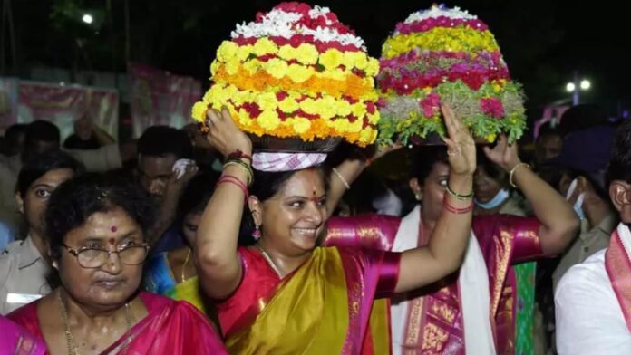 Kavitha Bathukamma Celebrations: తెలంగాణ సాంస్కృతికి నిలువుటద్దగా నిలిచే బతుకమ్మ సంబరాలు అట్టహాసంగా మొదలయ్యాయి. తొమ్మిది రోజుల పాటు జరిగే ఈ సంబరాల తొలిరోజును ఎంగిలి పూల బతుకమ్మగా నిర్వహిస్తారు. ఇప్పటికే బతుకమ్మ సంబరం ఊరూరా, వాడ వాడన పూల జాతర షురూ అయ్యింది. బతుకమ్మలను పూలతో పేర్చి ఆటపాటలతో ఉత్సాహంగా సంబరాలను జరుపుకుంటున్నారు మహిళలు. బతుకమ్మ వేడుకల్లో భాగంగా ఎమ్మెల్సీ, భారత జాగృతి అధ్యక్షురాలు కల్వకుంట్ల కవిత తన సొంత గ్రామం సిద్దిపేట రూరల్ మండలం చింతమడక వెళ్లారు. చింతమడకలోనే బతుకమ్మ వేడుకలు జరుపుకున్నారు. చింతమడక గ్రామ ముదిరాజ్ సంఘం అధ్యక్షుడు చిన్నారామ్ ముత్యం ఆహ్వానం మేరకు వెళ్లిన కవిత.. ఆయన ఇంట్లో తోటి మహిళలతో కలిసి పాటలు పాడుతూ ఎంగిలి పూల బతుకమ్మను పేర్చారు. అనంతరం మహిళలతో కలిసి ఆడిపాడారు. ఇటీవల బీఆర్ఎస్ పార్టీ నుంచి కవితను బహిష్కరించడం.. సస్పెన్షన్ వేటు పడటంతో ఆమె పార్టీకి రాజీనామా చేసిన విషయం తెలిసిందే. ఈ పరిణామాల తర్వాత బతుకమ్మ వేడుకల కోసం ఆమె తొలిసారి తన సొంతూరు చింతమడకకు వెళ్లడంతో కవిత పర్యటనపై ఆసక్తి నెలకొంది.
