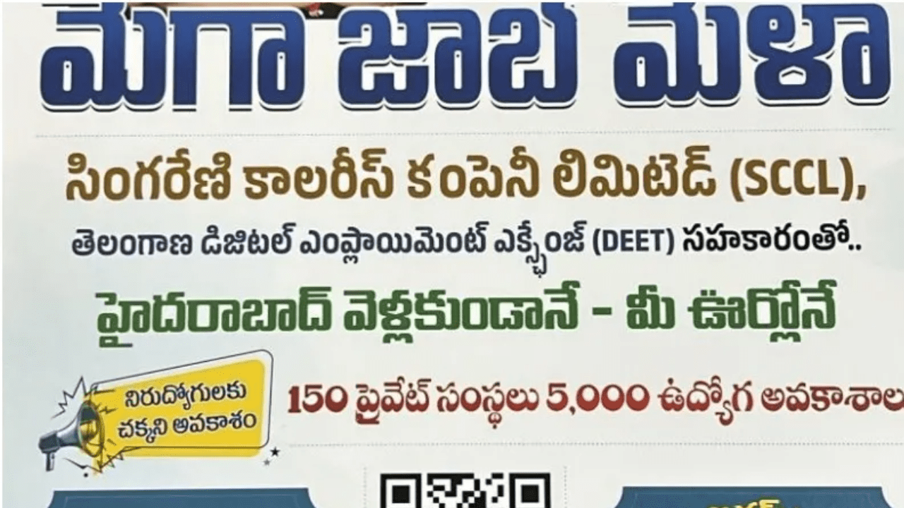 సింగరేణి కాలరీస్ కంపెనీ లిమిటెడ్ (SCCL), తెలంగాణ డిజిటల్ ఎంప్లాయిమెంట్ ఎక్స్ఛేంజ్ (DEET) సహకారంతో ఈ మెగా జాబ్ మేళా జరుగుతుంది. ఐటీ, ఫార్మా, ఇ-కామర్స్, ట్రేడ్, మాన్యుఫ్యాక్చరింగ్, ఐటీఈఎస్, బీపీఓ, బయోటెక్నాలజీ రంగాలకు చెందిన కంపెనీల్లో ఖాళీలను భర్తీ చేయనున్నారు. 10వ తరగతి నుంచి ఇంజనీరింగ్ గ్రాడ్యుయేట్ల వరకు అర్హత కలిగిన అభ్యర్థులు ఈ మెగా జాబ్లో పాల్గొనవచ్చు. సూర్యాపేట జిల్లా యువత ఈ అవకాశాన్ని సద్వినియోగం చేసుకోవాలని మంత్రి ఉత్తమ్ కుమార్ రెడ్డి సూచించారు.