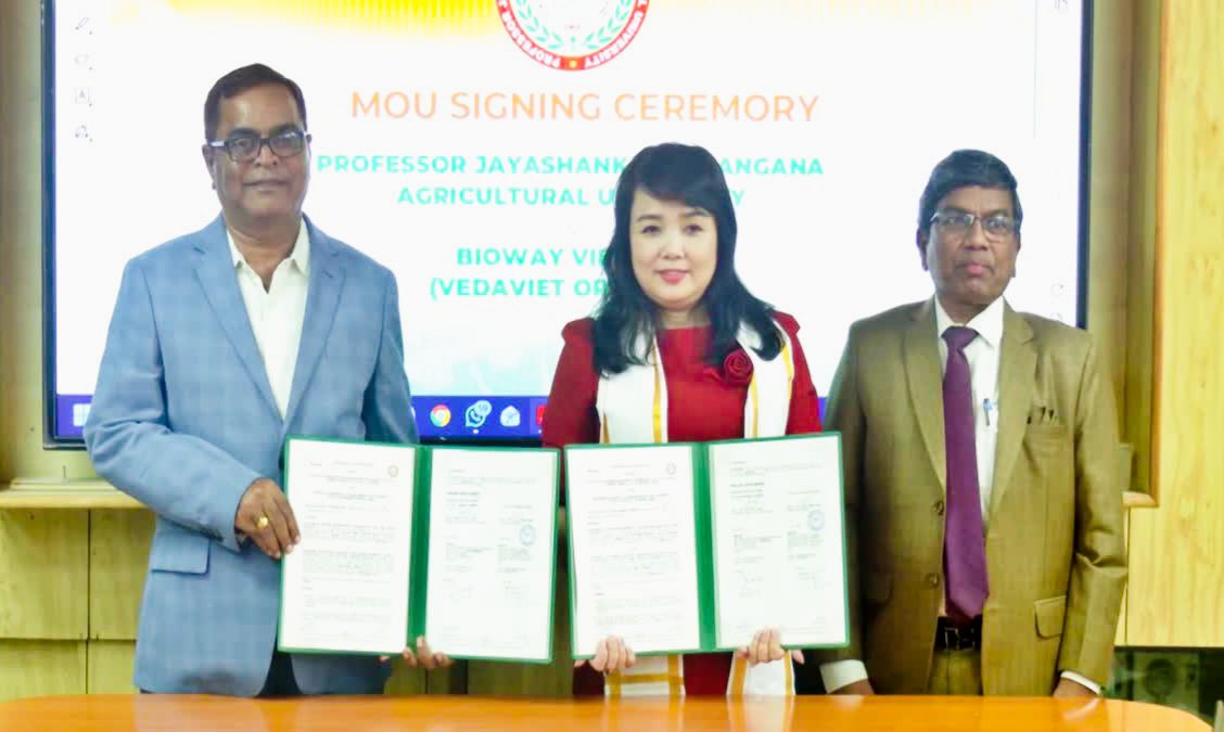 రసాయన ఎరువుల కబంధ హస్తాల నుంచి తెలుగు నేలను విడిపించేందుకు, రైతుకు తక్కువ ఖర్చుతో నాణ్యమైన పోషకాలను అందించేందుకు ప్రొఫెసర్ జయశంకర్ తెలంగాణ రాష్ట్ర వ్యవసాయ విశ్వవిద్యాలయం (PJTSAU) చరిత్రాత్మక ముందడుగు వేసింది. వియత్నాంకు చెందిన ‘బయోవే ఇంటర్నేషనల్ ఆర్గానిక్ ప్రైవేటు లిమిటెడ్’ సంస్థతో కీలక ఒప్పందం కుదుర్చుకుంది.