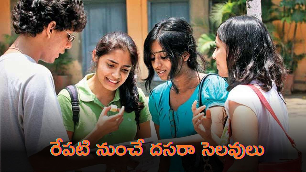 Dussehra Holidays For Intermediate Students: ఇంటర్మీడియట్ విద్యార్థులకు తెలంగాణ ప్రభుత్వం గుడ్న్యూస్ చెప్పింది. దసరా పండుగ సందర్భంగా రాష్ట్రంలోని అన్ని ప్రభుత్వ, ప్రైవేట్ జూనియర్ కాలేజీలకు ఇంటర్ బోర్డు దసరా సెలవులు ప్రకటించింది. రేపటి (సెప్టెంబర్ 27) నుంచి అక్టోబర్ 5 వరకు దసరా సెలవులు అమల్లో ఉంటాయని తెలిపింది. మొత్తం 9 రోజుల పాటు సెలవులు ఇవ్వాలని ఆయా కళాశాల యాజమాన్యాలను ఆదేశించింది. సెలవుల అనంతరం తిరిగి అక్టోబర్ 6న ఇంటర్ కాలేజీలు తెరుచుకొనున్నాయని స్పష్టం చేసింది. ఈ మేరకు ఇంటర్ బోర్డు ప్రకటన వెలువరించింది. కాగా, తెలంగాణలో ఇంటర్ కాలేజీలకు 2025 సెప్టెంబర్ 28వ తేదీ నుంచి అక్టోబర్ 5వ తేదీ వరకు సెలవులు ఇవ్వనున్నట్లు గతంలో ప్రభుత్వం ప్రకటించింది. అయితే, భారీ వర్షాల నేపథ్యంలో ఒక రోజు ముందుగానే అంటే రేపటి (సెప్టెంబర్ 27) నుంచి తెలంగాణలో జూనియర్ కాలేజీలకు దసరా సెలవులు ప్రారంభం కాబోతున్నాయి. అయితే, సెలవుల్లో ప్రైవేటు కాలేజీలు క్లాసులు నడిపితే కఠిన చర్యలు ఉంటాయని ఇంటర్ బోర్డు హెచ్చరికలు జారీ చేసింది. ముఖ్యంగా ఎయిడెడ్ జూనియర్ కాలేజీల ప్రిన్సిపల్స్, యాజనమ్యం సెలవుల్లో క్లాసులు నిర్వహించే అఫిలియేషన్ క్యాన్సిల్ చేయవల్సి ఉంటుందని హెచ్చరించింది. మరోవైపు స్కూళ్లతోపాటు జూనియర్ కాలేజీలకు కూడా 10 రోజులు సెలవులు ఇవ్వాలంటూ తెలంగాణ ప్రైవేట్ టీచర్స్ లెక్చరర్ ఫెడరేషన్ రాష్ట్ర కమిటీ డిమాండ్ చేస్తుంది.