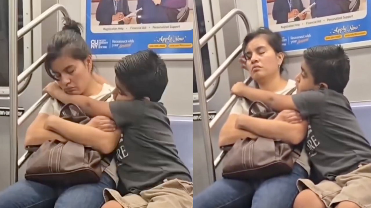 On public transport, a child protects his mother who looks exhausted and falls asleep, and the child takes care of her while she can rest a little. 💕 pic.twitter.com/LGxpfZBXBK