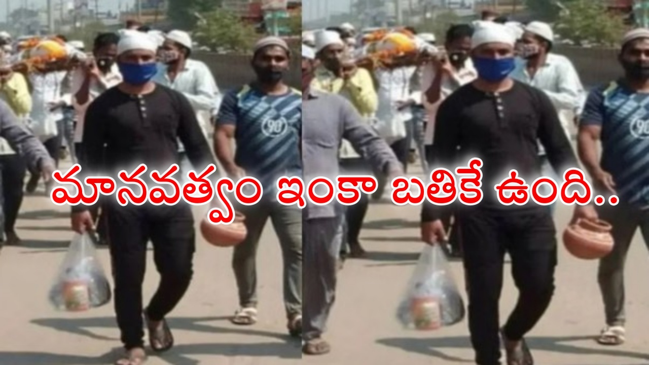 Rajasthan Viral news: ‘హిందూ-ముస్లిం బాయ్ బాయ్‘ అనడమే కాదు దాన్ని చేతుల్లో కూడా చేసి చూపించాడు ఓ ముస్లిం యువకుడు. ఓ హిందూ మహిళ చనిపోతే అన్నీ తానై చేసి..చివరకు కన్న కొడుకులా అంత్యక్రియలు కూడా నిర్వహించి ఇంకా మానవత్వం బతికే ఉందని నిరూపించుకున్నాడు. ఈ హృదయ విదారక సంఘటన రాజస్థాన్లోని భిల్వారాలో చోటుచేసుకుంది. అంతేకాకుండా ఆమె చితా భస్మాన్ని త్రివేణీ సంగమ క్షేత్రంలో నిమజ్జనం చేస్తానని కూడా చెప్పాడు. అతడి చేసిన పనికి సోషల్ మీడియా వేదికగా ప్రశంసలు వస్తున్నాయి.