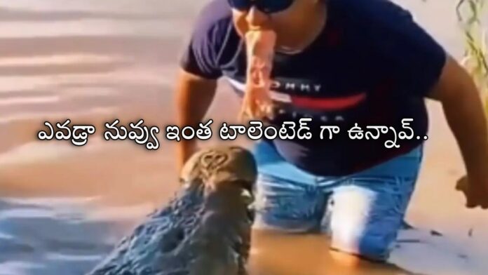 Crocodile Viral Video: మెుసలికి నీటిలో వెయ్యి ఏనుగుల బలం కలిగి ఉంటుంది. అందుకే మకరం నీటిలో ఉన్నప్పుడు ఎవ్వరూ అందులోకి దిగేందుకు సాహసించరు. నీటిలో మెుసలిని మించిన ప్రమాదకారి ఏది ఉండదు. అలాంటి మెుసలితోనే తాజాగా ఓ వ్యక్తి ఆటాడుకున్నాడు. ఏకంగా తన నోటితో మెుసలికి మాంసం తినిపించి అందరినీ షాక్ కు గురిచేశాడు. ప్రస్తుతం ఈ వీడియో నెట్టింట వైరల్ గా మారింది.