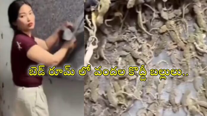 Hundreds of lizards in House: సాధారణంగా చాలా మంది తమ ఇళ్లలో పిల్లులు, కుక్కలు, మేకలు, గొర్రెలు, చిలుకలు కూడా పెంచుకోవడం చూశాం. మరికొంత మంది అయితే పాములను కూడా పెంచుకుంటున్నారు. ఇంకొందరు క్రూర మృగాలైన సింహాలు, పులులను కూడా పెంచుకుంటున్నారు. వీటిని కాస్త ఢిపరెంట్ గా ఓ యువతి బల్లులను పెంచుకుని అందరినీ ఆశ్చర్యానికి గురిచేసింది. ప్రస్తుతం దీనికి సంబంధించిన వీడియో నెట్టింట వైరల్ గా మారింది.