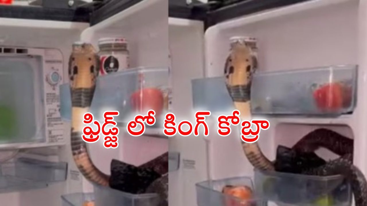 King Cobra inside a fridge video: సోషల్ మీడియాలో పాములకు సంబంధించిన వీడియోలకు మంచి వ్యూస్ వస్తున్నాయి. ముఖ్యంగా కింగ్ కోబ్రా, అనకొండ, కొండ చిలువలకు సంబంధించిన వీడియోలను చూసేందుకు నెటిజన్స్ ఇంట్రెస్ట్ చూపిస్తున్నారు. సర్పాల వీడియోలకు వస్తున్న ఆదరణతో కంటెంట్ క్రియేటర్స్ కూడా అధిక సంఖ్యలో పాముల వీడియోలను నెట్టింట పోస్ట్ చేస్తూ ఉన్నారు. ఇందులో కాస్త డిఫరెంట్ గా ఉన్న వీడియో వైరల్ గా మారుతుంది.