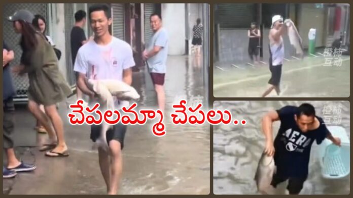 ట్రెండ్ అవుతున్న వీడియోలో.. టైపూన్ ప్రభావం వల్ల మకావు వీధుల్లోకి చేపలు కొట్టుకువచ్చాయి. దీంతో చేపలను పట్టేందుకు స్థానికులు ఎగబడ్డారు. వలలు, ప్లాస్టిక్ సంచులతో చేపలను పట్టుకునేందుకు ప్రయత్నించారు. చాలా మంది పెద్ద పెద్ద వాటినే పట్టారు. కొంత మంది అయితే పట్టిన చేపలను సైకిళ్లపై లోడ్ చేసేందుకు ప్రయత్నిస్తున్నట్లు వీడియోలో కనిపించారు. మరికొందరు అయితే చేపలతో సెల్ఫీలకు పోజులిచ్చారు.